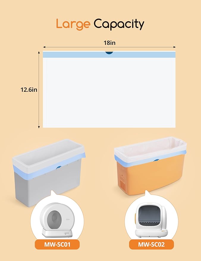 - 【Easy to Use】Each of our liners is self-contained, you don't need to tear at the seams when you open it, just pull it out easily. Be sure to select the correct size that corresponds with your litterbox