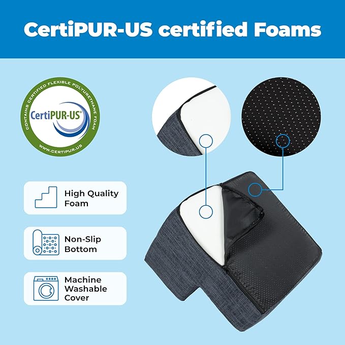 - PET-SAFE MATERIAL: Constructed with CertiPUR-US Certified Foam, these non-slip dog stairs for small and medium dogs provide safety for pets while being free from ozone depleters, PBDE flame retardants, mercury, and lead