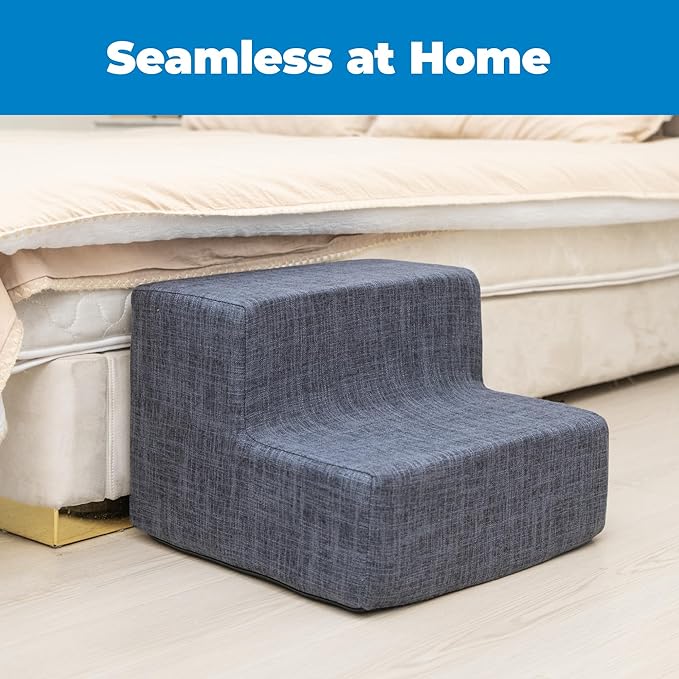 Best Pet Supplies Dog Stairs & Steps - Foam Steps for Small Dogs & Cats, Non-Slip Indoor Balanced Pet Step Support, Dog Ramp, No Assembly, Dark Gray Linen, 2-Step (12-inch Height)