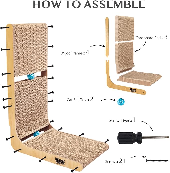 - Built-in Cat Ball Fun & Chase Thrill: Cat furniture features two built-in cat bell toy balls, making every scratch an adventure. Watch your furry friend pounce on, chase, and bat at the balls for hours of fun. And no need to worry about the balls getting lost or swallowed—they're securely fastened to each track