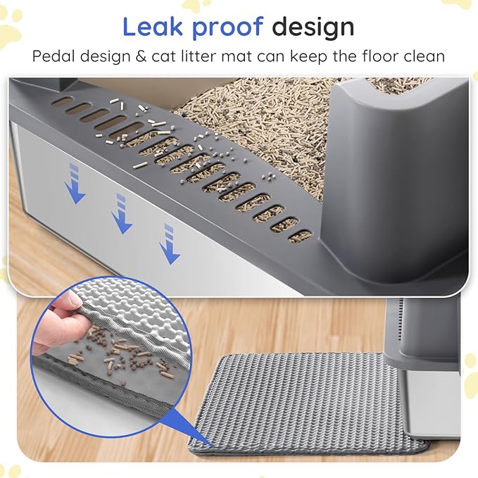 - 【Complete Set of Accessories】 Includes a litter scoop, litter-trapping foot mat, and four non-slip pads to prevent shifting. Everything you need to make cleaning easier and keep the area tidy.