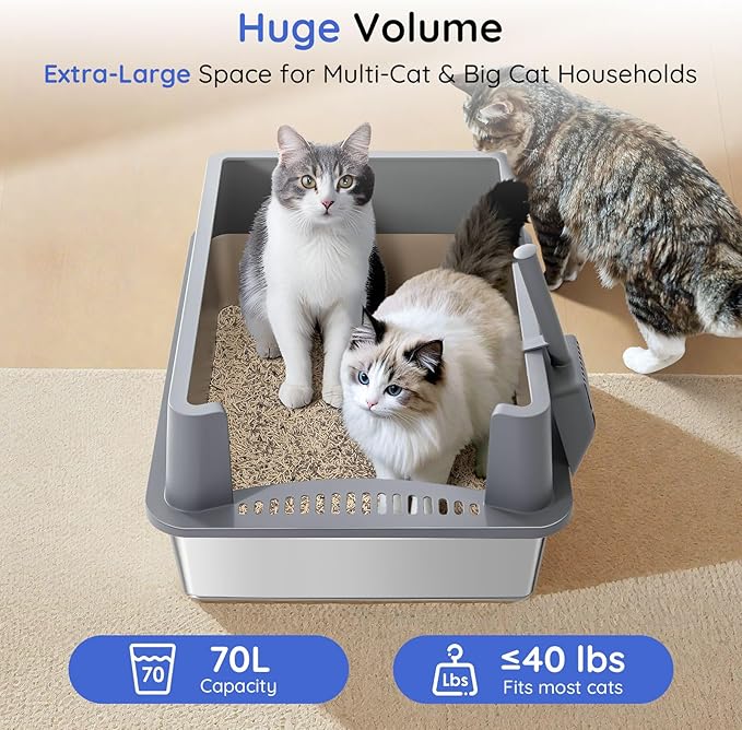- 【Odor-Free & Easy to Clean】Made of high-quality stainless steel, this litter box is non-stick, rust-proof, and scratch-resistant. It’s easy to rinse and wipe, and won’t trap odors or stains—saving you time and keeping your home fresh.