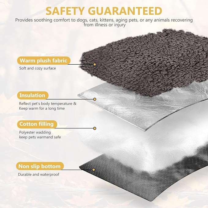 - 𝐒𝐜𝐢𝐞𝐧𝐭𝐢𝐟𝐢𝐜 𝐇𝐞𝐚𝐭 𝐑𝐞𝐭𝐞𝐧𝐭𝐢𝐨𝐧 𝐓𝐞𝐜𝐡 Features heat-reflective aluminum foil layer to trap your cat's body heat naturally! No electricity needed – this thermal cat bed mat keeps pets toasty in winter. Vet-approved safe heating for all breeds