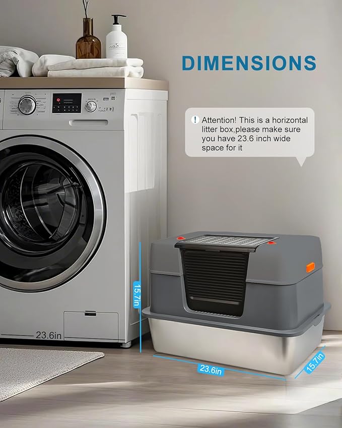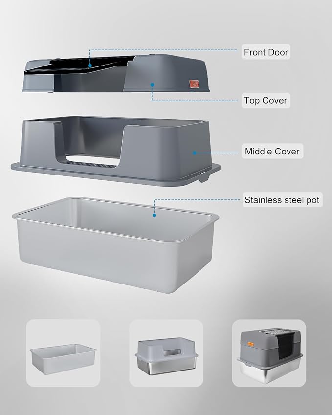 - 【All-In-One Solution】Our stainless steel cat litter box comes with a metal litter scoop, a separate storage box for the scoop. It meets all your needs in one package. You can use it with confidence, and if you have any issues, feel free to contact us for perfect after-sales support.