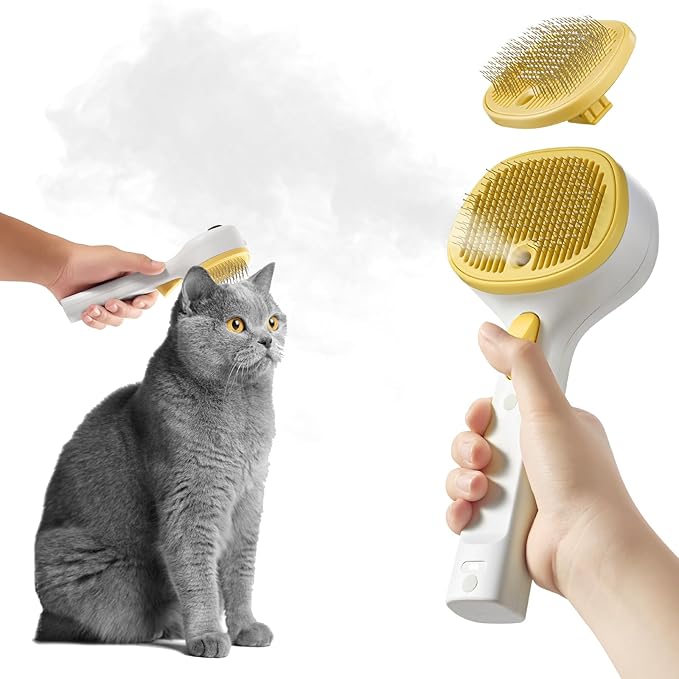 - 【Dual Steam Modes】 Go from light mist to powerful steam to loosen tangles and cut shedding. Anti-static spray prevents airborne fur. Ideal dog brush for shedding or cat steam brush, handling fine and dense coats.