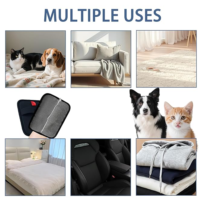 - 【Perfect for Every Pet Owner】Whether you have a cat, dog, or both, this electrostatic pet hair remover is ideal for everyday use. It works great on all types of pets and can easily clean all the hard-to-reach areas like furniture cracks and upholstery gaps