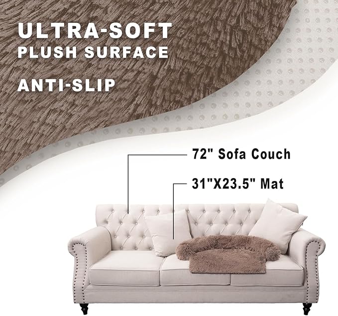 Calming Dogs/Cats Bed Mats, Dog Pad Washable Removable Couch Cover, Plush Long Fur Mat for Pets, Waterproof Lining, Perfect for Small, Medium and Large Dogs and Cats (Desert Brown, 31"x23")