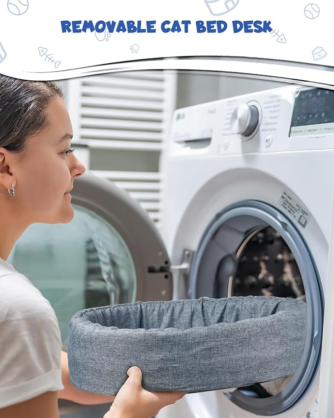 Cat Desk Bed, 360° Rotating Elevated Desk Cat Bed, Adjustable Desk Kitten Bed Up to 55 LBS, Washable Soft Fabric Pet Desks Nest Beds, Modern Indoor Cat Nest Furniture for Home, Office, Study and Room