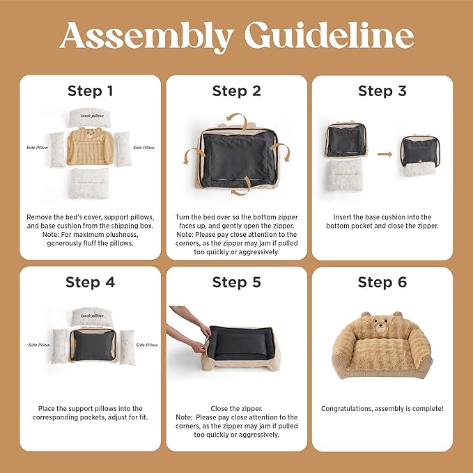 LE SURE Cute Dog Couch for Pets - Fluffy Original Bear Design Dog Beds for Medium Dogs, Pet Sofa with Washable Cover, Supportive Dogs Sofa Bed with Removable, 36inch, Almond