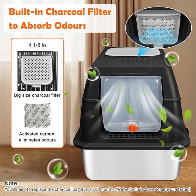 - Odor Control for Cat Litter: The fully enclosed design locks in odors, while the top includes a space to add activated charcoal, enhancing odor control and keeping your home fresh