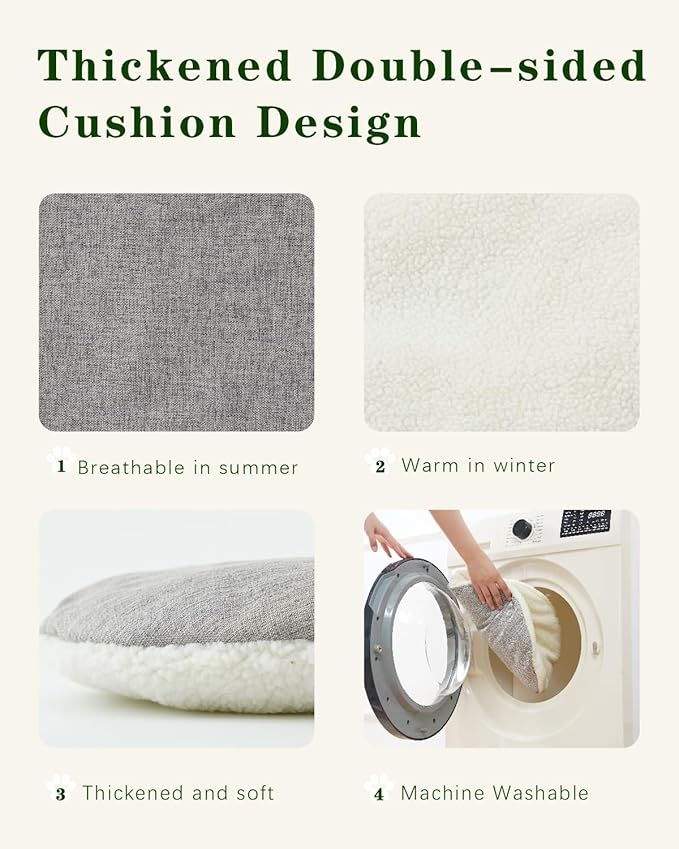 - Premium Materials: The large cat house is handwoven with durable odorless rattan, providing a soft, shining through and airy space for cats, and the cat cave is equipped with one double-sided pad, which is airy breathable in summer and soft warm in winter