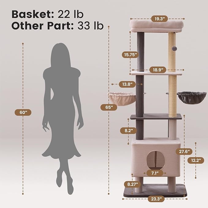 - [Ultra-Stable Heavy-Duty Design | Ideal for Multi-Cat Households] ✅ Reinforced Structure: Features 2.84-inch thickened posts wrapped in 450D wear-resistant plush fabric, supporting up to 30 lbs. Stays wobble-free even with 5 cats playing simultaneously. ✅ Extra-Large Base: 19" x 23" oversized base with anti-slip design prevents tipping.