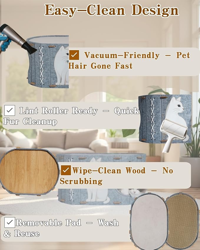 - STURDY COLLAPSE-FREE DESIGN FOR ACTIVE CATS:Crafted with thick felt panels and secure rope fasteners, this house won’t flatten or tip—even during crazy zoomies. It’s stable, safe, and built for cats who like to jump, scratch, and explore.