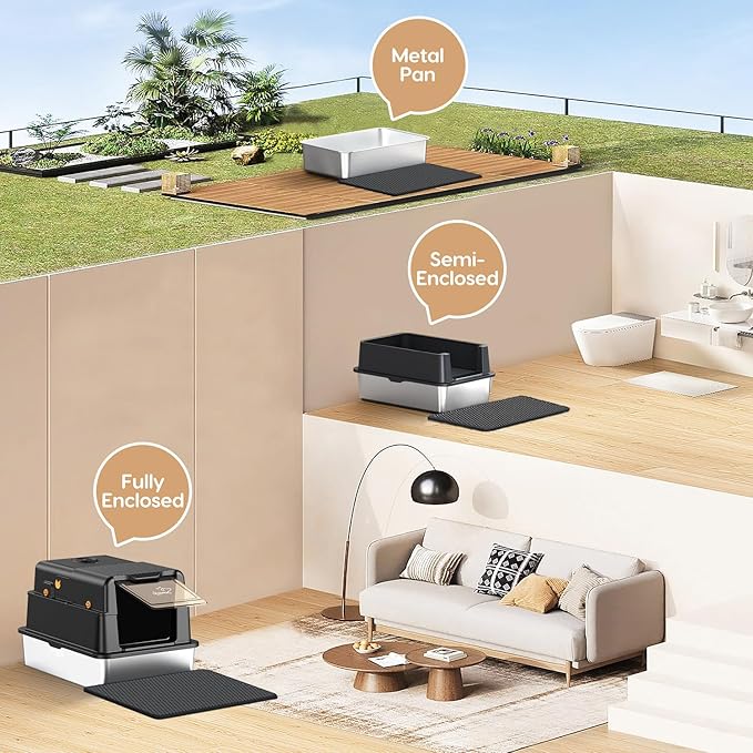 - 【Innovative Flip-Top Design + 3-Layer Assembly】 The stainless steel covered cat litter box features a flip door design, making cleaning simple and effortless. Easily open the lid to clean without removing the entire cover. With an easy-to-assemble 3-layer detachable shell, it offers both fully enclosed and semi-enclosed configurations.