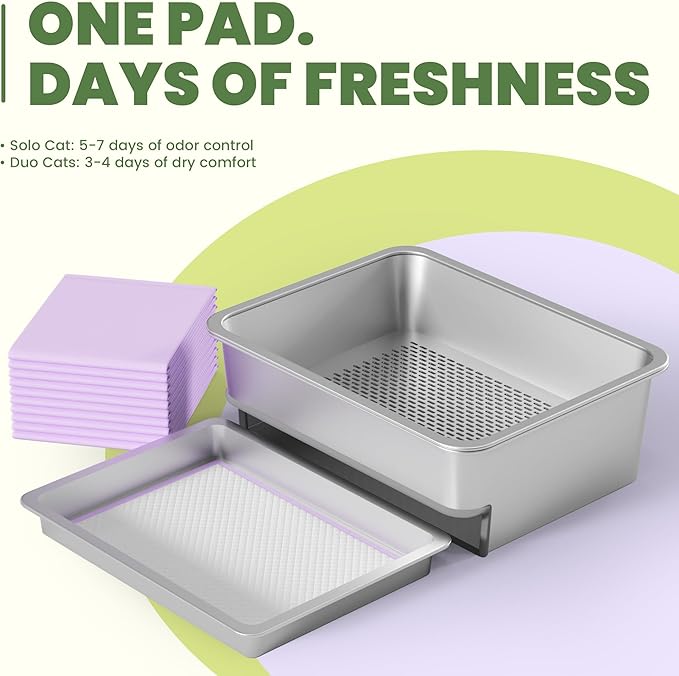- 2-Month Hassle-Free Solution - *Pre-measured for 1 cat*: 7lbs litter + 10 pads = 60 days fresh