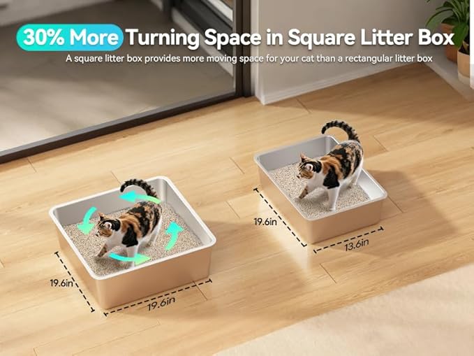 - Spacious 89L Square Box for Happy Moves: Big square design (19.69" x 19.69" x 23.62")—perfect for small and large cats. No more tight spaces—just happy, comfortable potty time