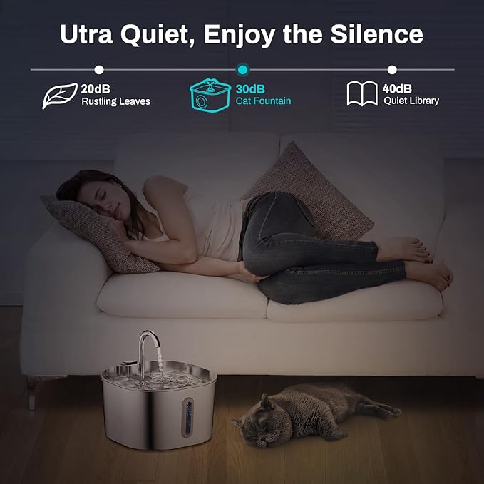 2.2L Stainless Steel Cat Water Fountain Automatic Pet Water Dispenser Accessories Auto Cat Drinking Fountain Dog Drinker Bowl