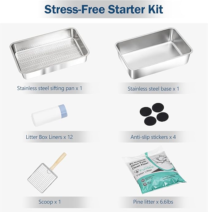 - DURABLE & SAFETY: Our sifting stainless steel cat litter box with lid is non-sticky, resistant rust and scratches. The rounded edges are designed with your cat's safety and comfort in mind. Built with sturdy stainless steel edges and anti-slip stickers preventing accidental tipping during use