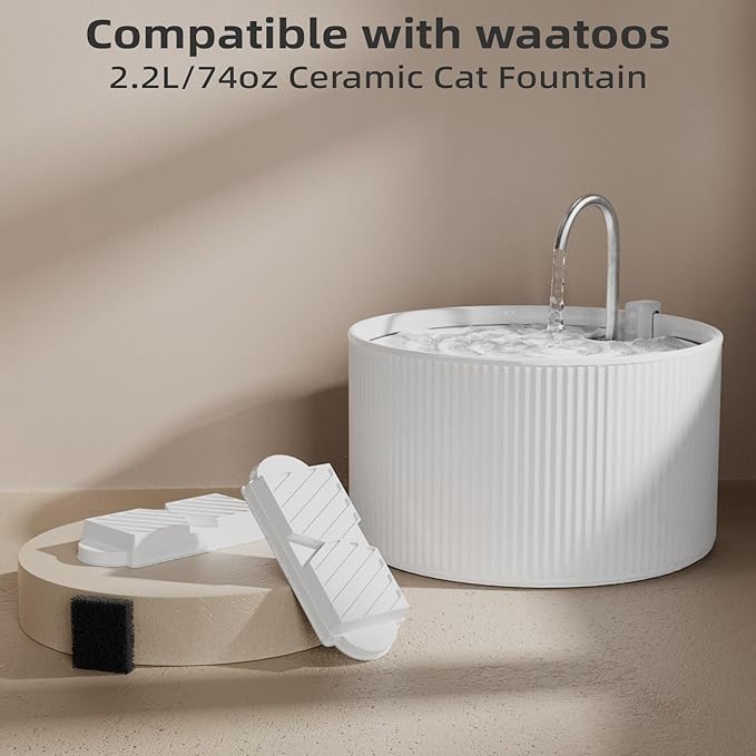 - 【Compatible Fountain】 These pet fountain filters are designed for the waatoos Upgraded Units 2.0 74oz/2.2L Ceramic Cat Water Fountain
