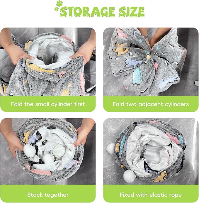 - 🐈【Easy to Use】This cat toy tunnel can be easily popped up and folded, comes with a storage bag, foldable design saves space, convenient to carry and store.