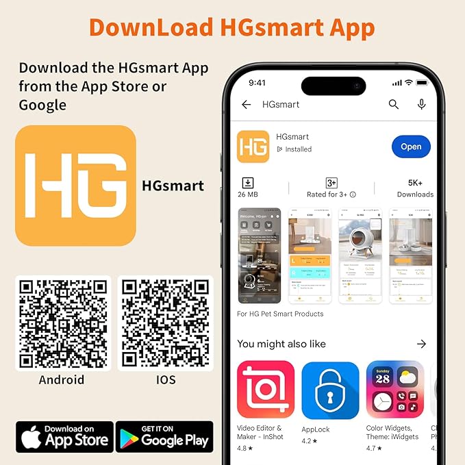 - 【Remote APP Control】 Easily manage your pet's feeding schedule with the "HGsmart" App on iOS / Android devices. Connect your automatic cat feeder to 2.4GHz/5GHz Wi-Fi for real-time monitoring and control from anywhere. View feeding records in the app to ensure the cat food is working as expected.