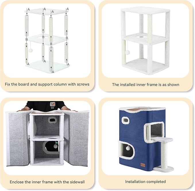 - Durable Scratching Post: The modern and cute cat apartment comes with a sisal cloth scratching post, which is sturdy and durable. There is 4 scratching pad on the side, and the scratching post is wrapped with natural and odorless sisal rope. The high-quality anti-scratch material allows your cat to scratch with confidence, protecting the furniture from scratches, and the scratching pad is durable and safe