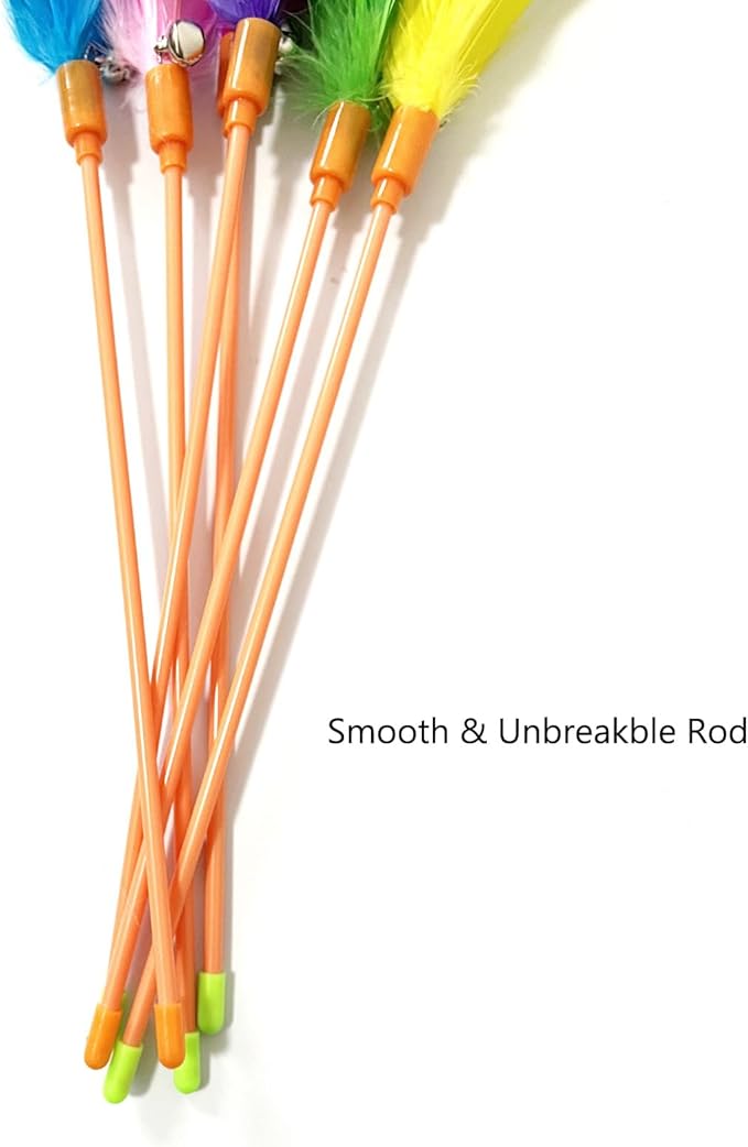 - You will get 6 PCS cat feather wands [random color] and keep them in different places in the house so playtime can happen anywhere