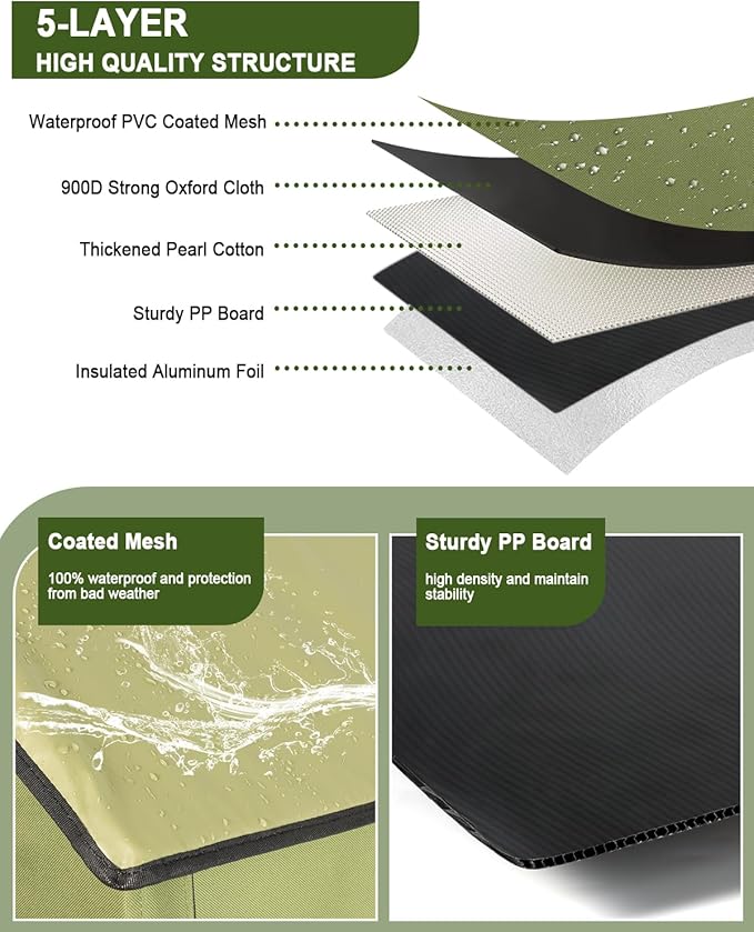 - Excellent Weatherproof and Waterproof: The roof of outdoor cat house for winter is designed with five layers of material, including a layer of waterproof mesh material, which effectively improves the waterproof performance. At the same time, an aluminium foil layer is added inside to further prevent moisture and heat preservation, ensuring that your beloved cat is always dry, comfortable and warm.