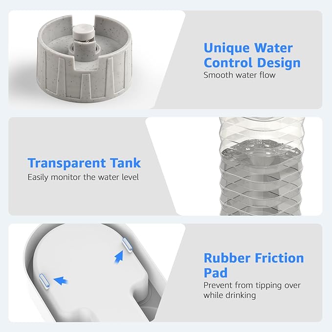 - 【Clean - Outlet Filter Cotton Design】This pet gravity water dispenser includes filter cotton. It can prevent dust from entering the inside of the water bottle. Keep water clean, and give pets healthy drinking.