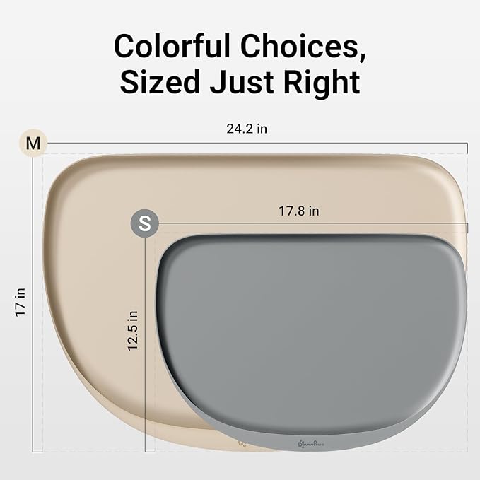 - Available in Two Sizes: Choose from two size options to suit your space and feeding setup. Sized to fit DownyPaws fountains or dog water bowl perfectly, while also compatible with most pet food and water bowls or feeder. (S: 17.8×12.5×0.6 in, M: 24.2×17×0.8 in)