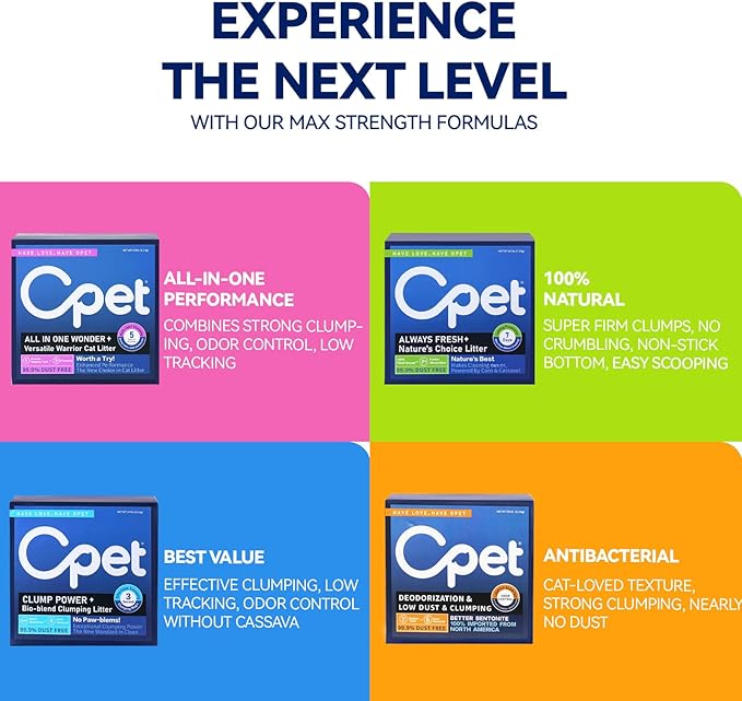 - 【100% Natural & Eco-Friendly Composition】OPET Cat Litter crafted from 70% plant-based materials—including pea fiber and corn starch—and 18% sodium bentonite. Thanks to its natural and non-irritating properties, this plant-based natural litter ensurs the health of your cats and especially for your little kittens.