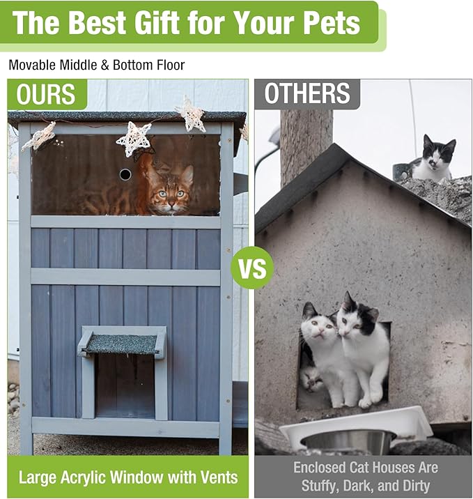 - πππππ πππππππ ππππππ & πππππ - Featuring a large acrylic window with vents, this cat house outdoor ensures ample light and air circulation, avoiding stuffiness. Unlike enclosed designs, it creates a bright, fresh environment for pets