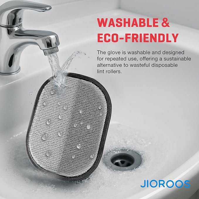 - Jioroos Eco-Friendly & Reusable -- Say goodbye to wasteful sticky sheets ant lint roller! These pet hair removal gloves are washable and reusable, making them a sustainable choice that saves you money and reduces environmental impact. and Cleanup is a breeze—just rinse it with water or toss it in the washer after a thorough session. No hassle, no fuss!