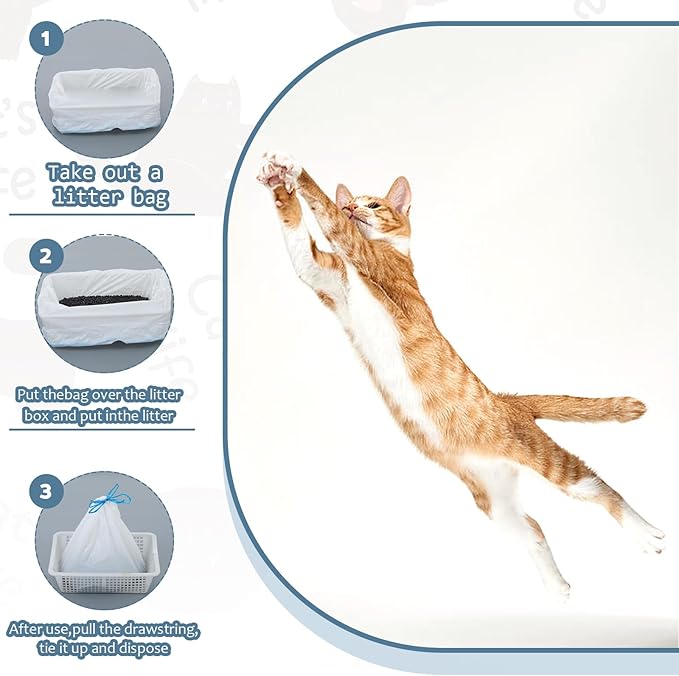 - 【Hygienic & Odor-Free】: Maintain a high level of cleanliness with our cat litter liner bag. The drawstring closure prevents litter exposure and odor overflow, keeping your home fresh and pleasant. Dispose of waste without direct contact, ensuring a hygienic process