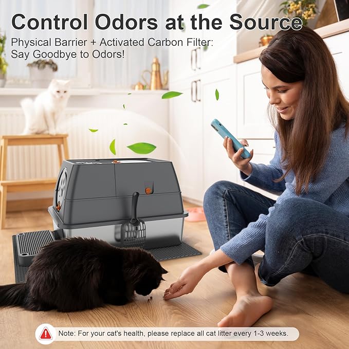 - EASY-TO-CLEAN DESIGN - The foldable front module further simplifies daily cleaning, making litter maintenance a breeze; High sides and top shield offer double protection, effectively preventing litter scatter; The smooth stainless steel surface makes it simple to rinse and wipe down.