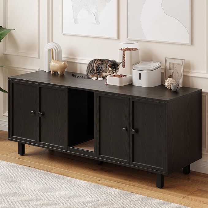 - All-in-One Furniture: Our large wooden litter box enclosure serves as both a cat house and a private enclosed space for litter needs. It blocks dogs from accessing the litter box while doubling as a TV stand, side table, or decorative furniture that blends seamlessly with home decor