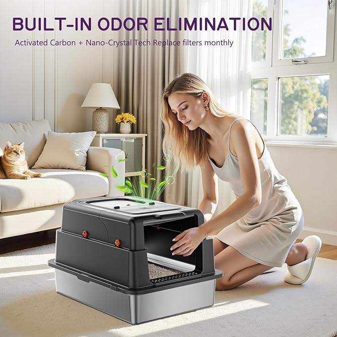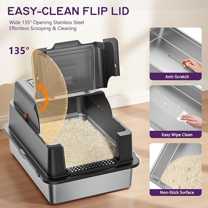 - πππππππ πππππππππ πππππ ππππππ πππ YIZEFERN's metal litter box with lid features a premium stainless steel interior. Its non-porous, smooth surface resists stains and odors permanently, eliminating the bacteria and stubborn smells that plague scratched plastic boxes. Cleaning is effortlessβjust wipe it clean in seconds. This stainless steel litter box with lid is the ultimate, permanent solution for a sanitary cat litter box enclosure