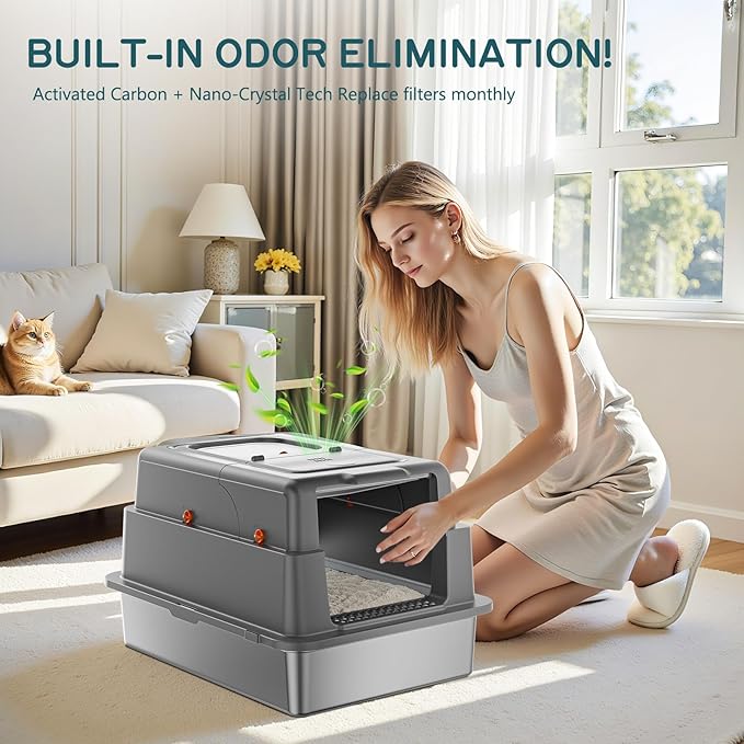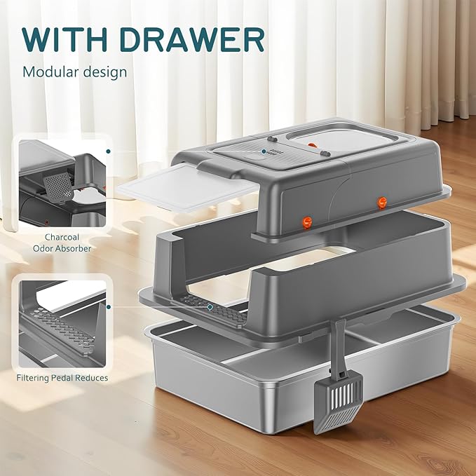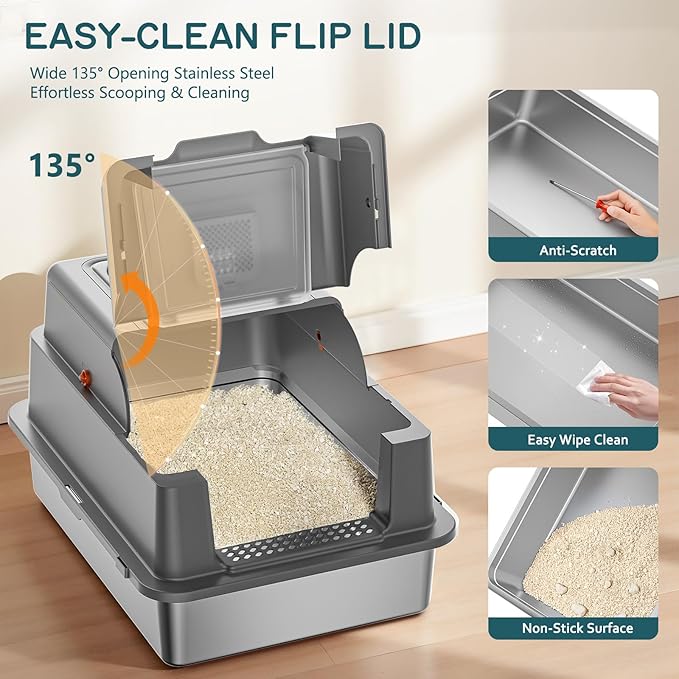 - πππππππ πππππππππ πππππ ππππππ πππ YIZEFERN's metal litter box with lid features a premium stainless steel interior. Its non-porous, smooth surface resists stains and odors permanently, eliminating the bacteria and stubborn smells that plague scratched plastic boxes. Cleaning is effortlessβjust wipe it clean in seconds. This stainless steel litter box with lid is the ultimate, permanent solution for a sanitary cat litter box enclosure