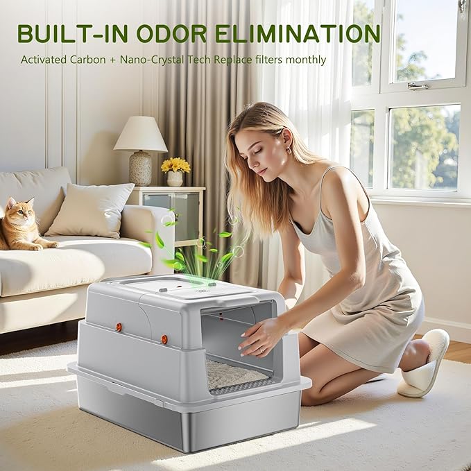 - πππππππ πππππππππ πππππ ππππππ πππ YIZEFERN's metal litter box with lid features a premium stainless steel interior. Its non-porous, smooth surface resists stains and odors permanently, eliminating the bacteria and stubborn smells that plague scratched plastic boxes. Cleaning is effortlessβjust wipe it clean in seconds. This stainless steel litter box with lid is the ultimate, permanent solution for a sanitary enclosed cat litter box