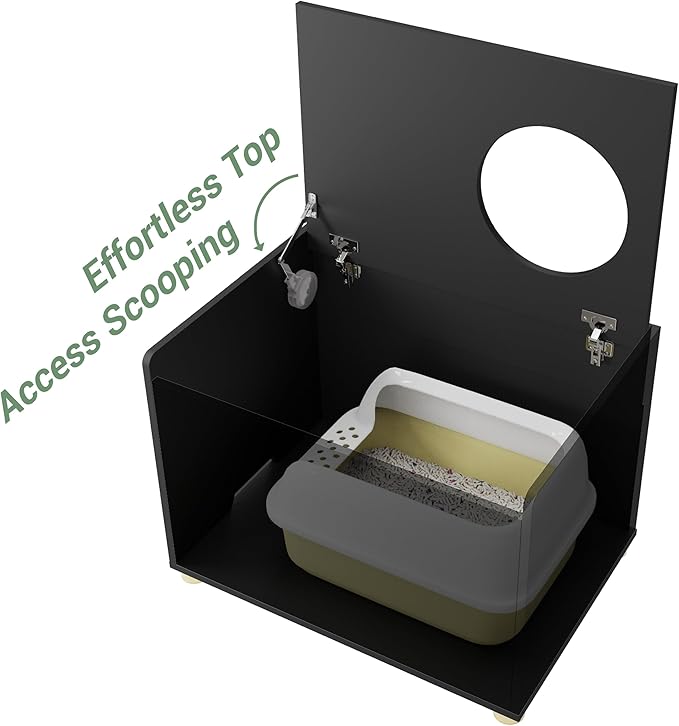 - Effortless Top-Access Cleaning: Skip bending and crouching! Easily scoop litter through the top opening of this Top-Entry Litter Box Enclosure, making daily cleanup quick and comfortable.