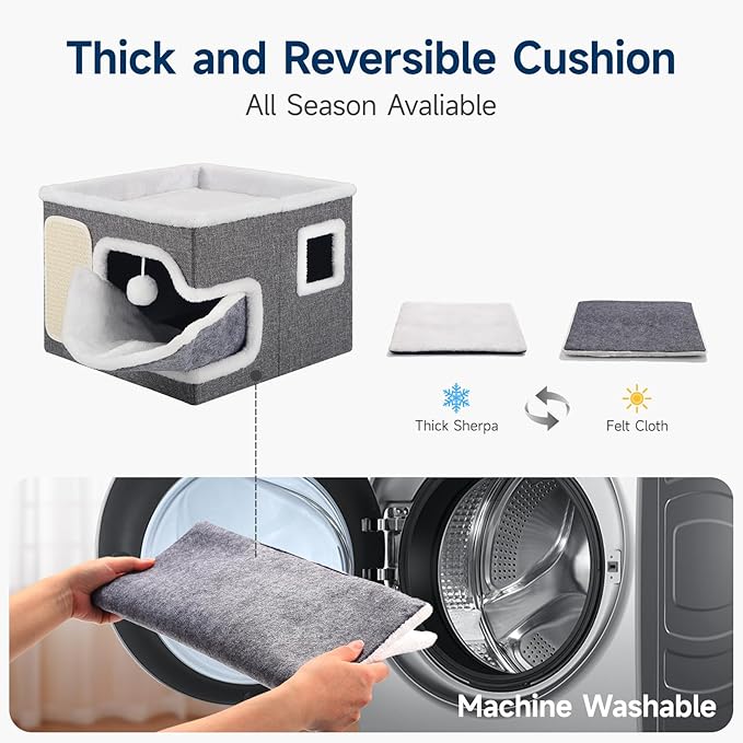 - 😺【Sturdy & Stable Construction】: The cat cube is made of reinforced thickened density board, ensuring a load-bearing capacity of up to 30lb. Even the most naughty cats can jump and play freely without causing the cat hut to collapse. The anti-slip design on the bottom prevents the cat bed from shaking easily.