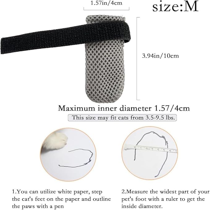 - Effortless Adjustable Application – Hook-and-loop straps customize fit for paws up to 1.57" diameter (3.94" length × 1.57" width). Quick to install/remove without discomfort—ideal for kittens to adult cats (3.5–9.5 lbs) .