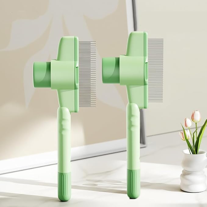 Cat Comb Dog Comb Pet Hair Removal Tool Flea for Cats and Dog Lice Cat Brush with Release Button Self-Cleaning with Long & Short Stainless Steel Metal Teeth for Shedding