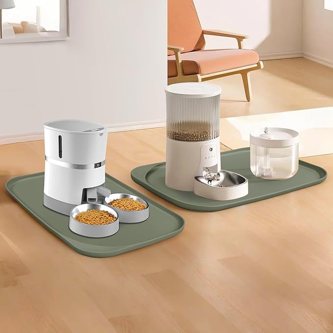 - Widely Used - The anti slip dog food spill mat with high sides can also be used under pet water fountain, automatic feeder, and litter boxes to help contain messes and protect floors. Use as boot mat, shoe matt tray for entryway, pet water splash mat, dog water bowl drip pan. Can also be used for dog crate, trash can, pet water dispenser, countertop, plant, fish tank.