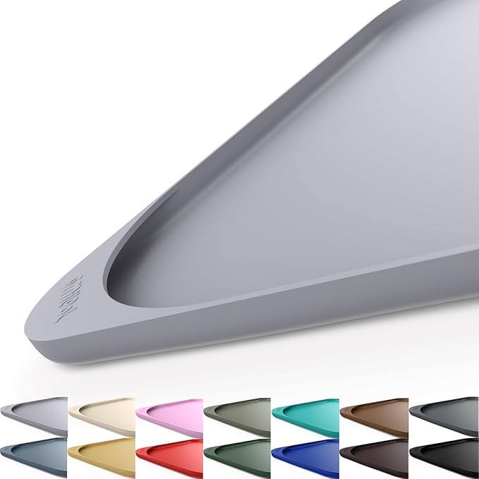 Silicone Pet Feeding Mat with Raised Edge & Residue Collection Pocket for Food and Water, Dog Bowl Mats, Cat Bowls Placemat with High Lip for Floor Waterproof, 24 x 16 x 0.8 Light Gray
