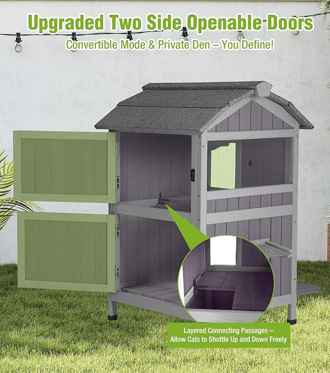 - πππππ-πππππ πππππππ πππππ ππππ π ππ π ππ - Equipped with multi-level platforms, this outdoor cat house encourages climbing, lounging, and playβturning into an engaging cat condo. Each platform provides a cozy spot for your pet to relax or survey its surroundings