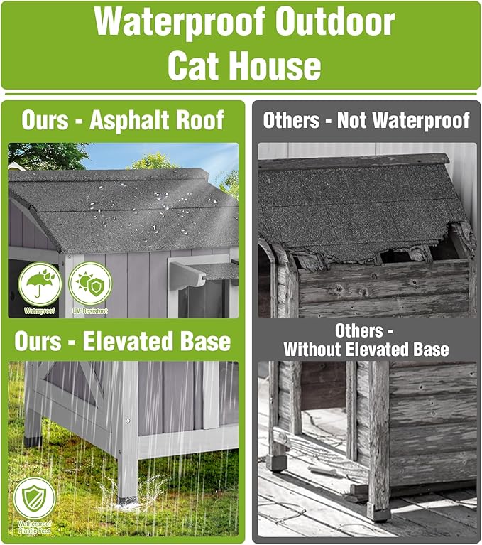 - ππππππππππππ ππππππ π ππ πππππππ ππππππππππ - Boasting an asphalt roof and elevated base, this outdoor cat house shields pets from rain, wind, and UV rays. Its sturdy construction ensures long-lasting use as a reliable cat shelter for outdoor cats