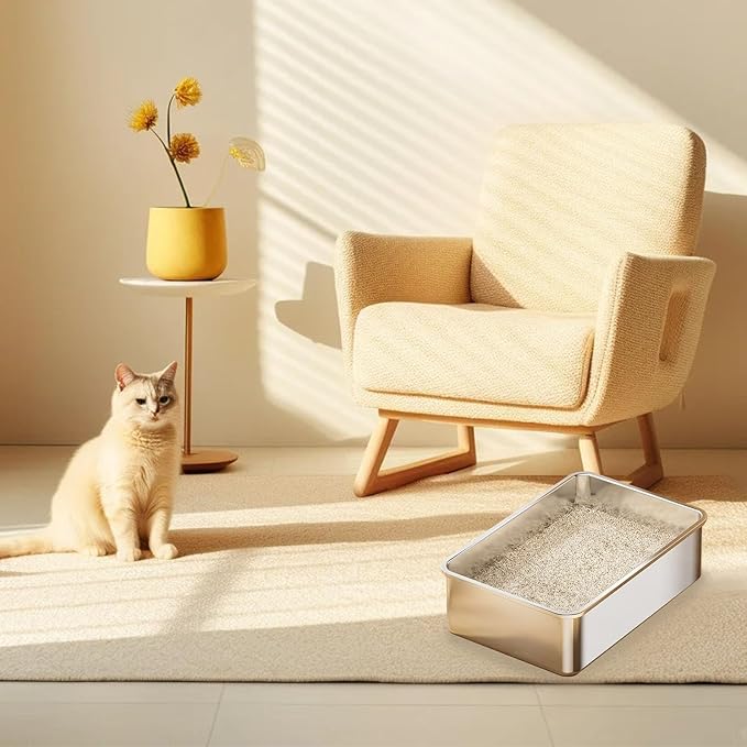 - Easy to Clean with Odor Control – the litter tray Made from durable stainless steel with a non-stick surface for effortless waste removal. Naturally odor-resistant to keep your home smelling fresh—just wipe or rinse for a spotless finish