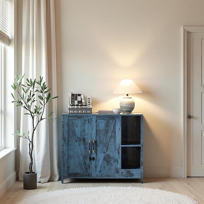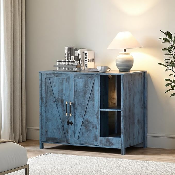 Cat Litter Robot Enclosure with Litter Collector,Cat Litter Cabinet with Dog Proof Adjustable Shelf,for Placing Litter Robot 3/4,Power Outlet (Blue)