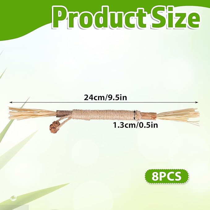 - 【Natural & Safe Cat Chew Stick】Our silvervine sticks for cats are crafted from pure matatabi wood, raffia, sisal, and gall fruit. These cat toys are completely edible. They provide a safe, satisfying outlet for your cat's natural chewing instincts, ensuring safe chewing and playtime for your feline friend. Give your feline friend the gift of natural chewing satisfaction today!